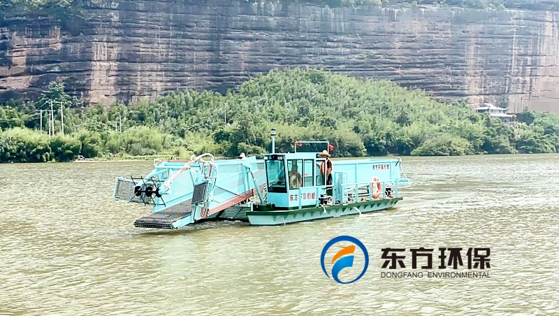 水草割收機(jī)亮相清水河